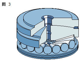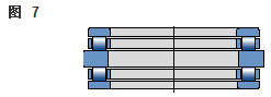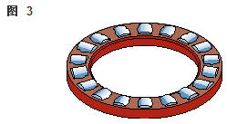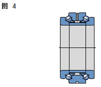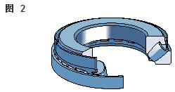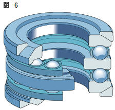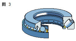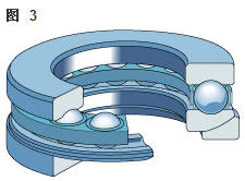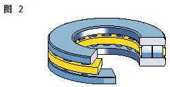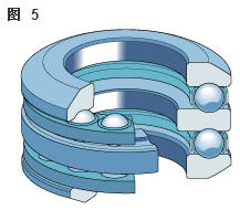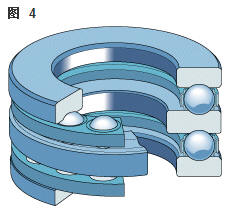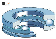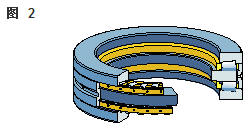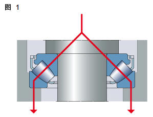 雙向角接觸推力球軸承 在雙向軸承的設(shè)計中(圖2),承載能力較高的上軸承與相反方向上的較小軸承結(jié)合,組成一個單元。這類軸承的高度低,除力矩負荷外也能承受雙向軸向負荷。 所以一個單一的軸承能用于支承相對靜止的旋轉(zhuǎn)機器部件。這些雙向軸承同樣也采用分離型設(shè)計。